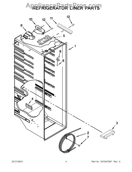 The Water Reservoir Tubing is an OEM replacement part for Whirlpool refrigerators. It is a flexible plastic tubing that replaces the water reservoir and holds the water for the ice maker and dispenser. Causes can include cracks from heat or cold exposure over time, punctures from sharp edges during installation, or deterioration of plastic tubing that impacts integrity. Symptoms of bad water reservoir tubing include: