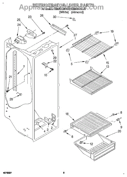 The Air Diffuser Assembly is an OEM part for Whirlpool refrigerators. It regulates the airflow between the refrigerator and freezer compartments, ensuring the proper distribution of cold air to maintain the desired temperatures in both sections.