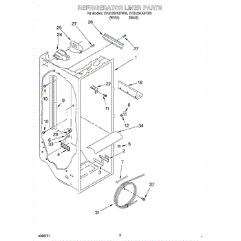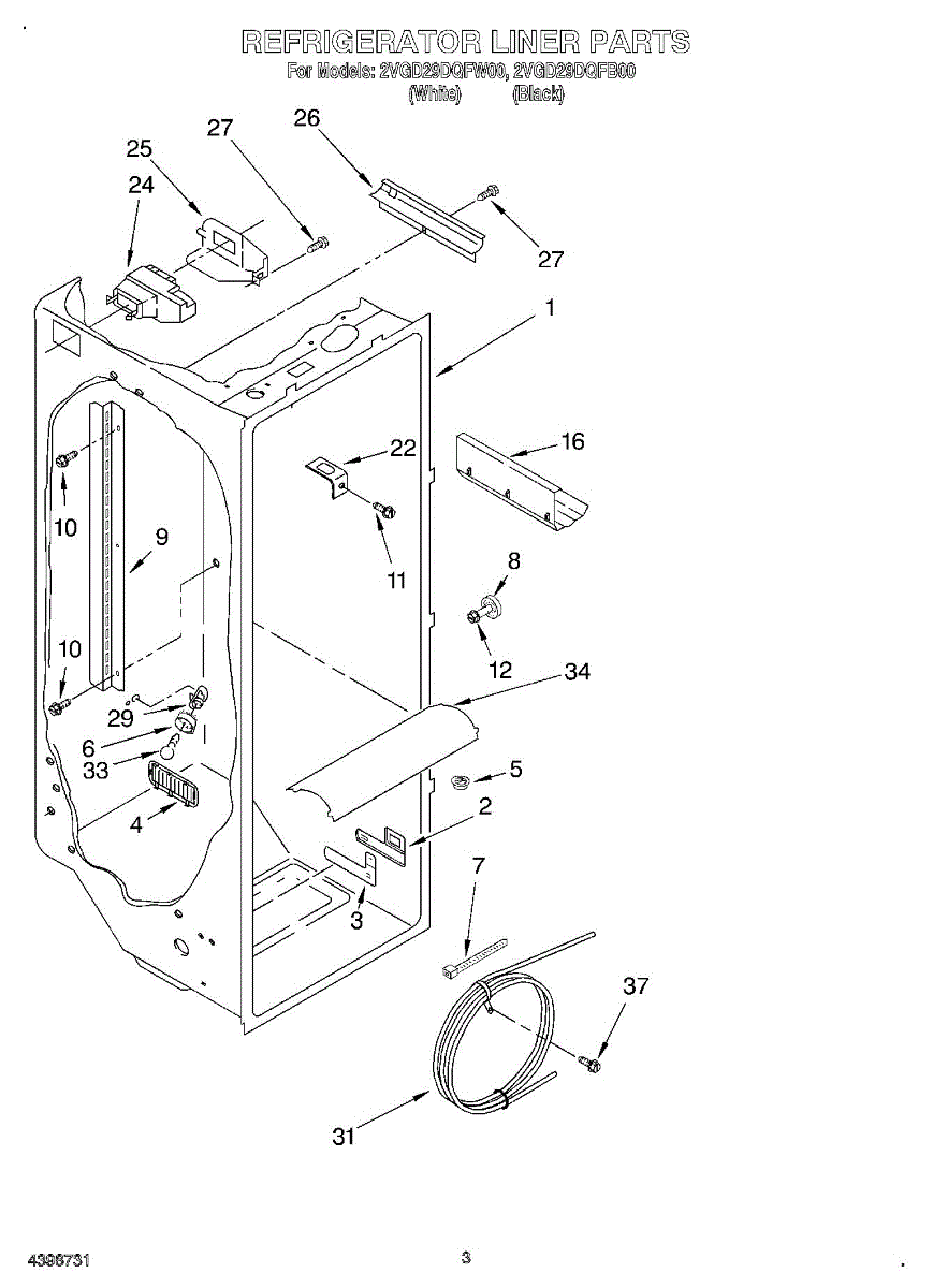 Parts for Whirlpool 2VGD29DQFW00: 02 - Refrigerator Liner Parts