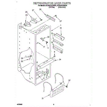 Parts for Whirlpool 3ED25DQXBW00: 02 - Refrigerator Liner Parts