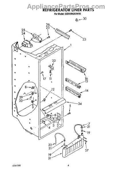 Parts for Whirlpool 3ED25RQXXW00: 04 - Refrigerator Liner Parts