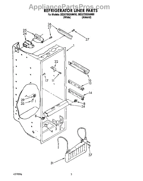 Parts for Whirlpool 3ED27DQXAN00: 02 - Refrigerator Liner Parts