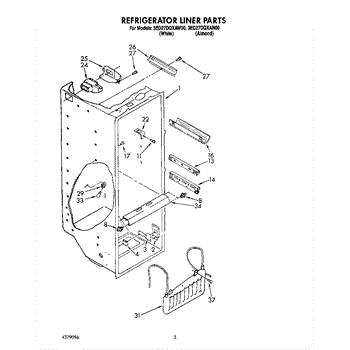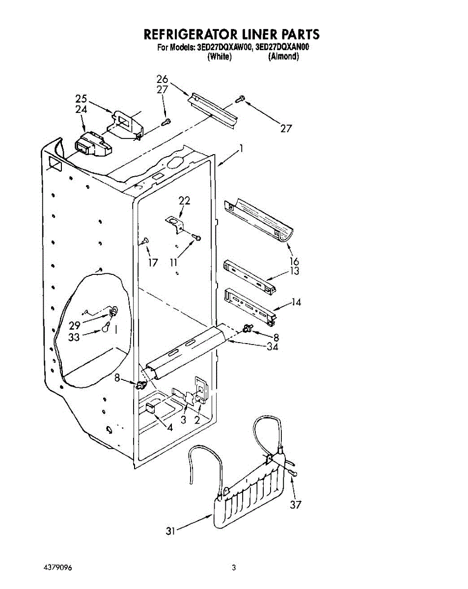 Parts for Whirlpool 3ED27DQXAW00: 02 - Refrigerator Liner Parts