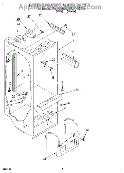 Parts for Whirlpool 3ED27DQXDW00: 02 - Refrigerator Liner Parts