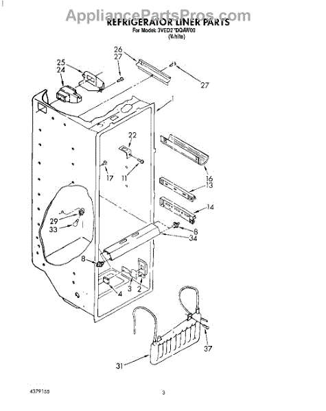 Parts for Whirlpool 3VED27DQAW00: 02 - Refrigerator Liner Parts