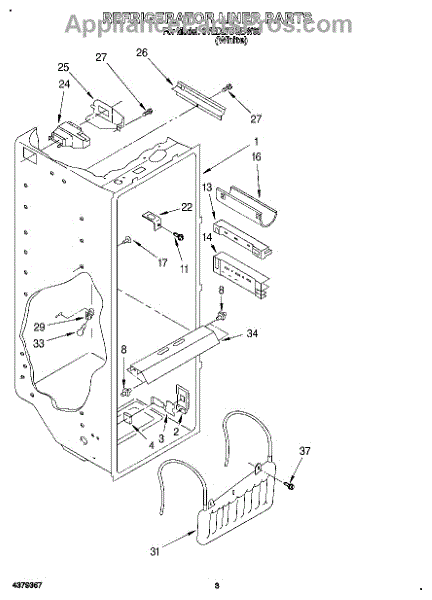 Parts for Whirlpool 3VED27DQBW00: 02 - Refrigerator Liner Parts