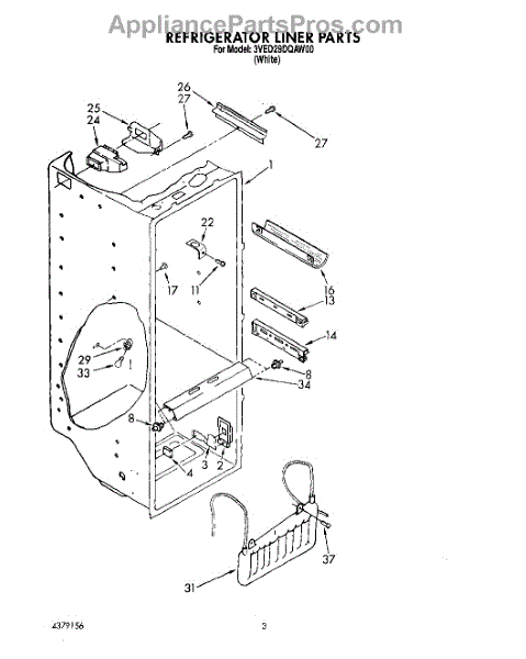 Parts for Whirlpool 3VED29DQAW00: 02 - Refrigerator Liner Parts