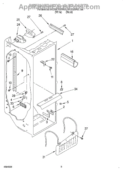 The Air Diffuser Assembly is an OEM part for Whirlpool refrigerators. It regulates the airflow between the refrigerator and freezer compartments, ensuring the proper distribution of cold air to maintain the desired temperatures in both sections.