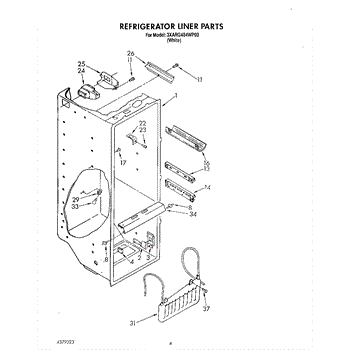 The Air Diffuser Assembly is an OEM part for Whirlpool refrigerators. It regulates the airflow between the refrigerator and freezer compartments, ensuring the proper distribution of cold air to maintain the desired temperatures in both sections.