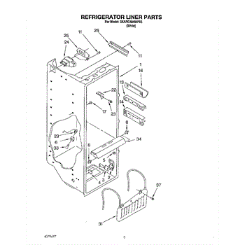 The Air Diffuser Assembly is an OEM part for Whirlpool refrigerators. It regulates the airflow between the refrigerator and freezer compartments, ensuring the proper distribution of cold air to maintain the desired temperatures in both sections.
