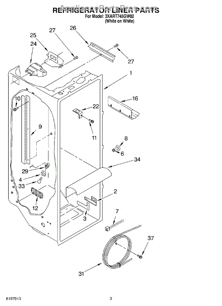 Parts for Whirlpool 3XART745GW02: 02 - Refrigerator Liner Parts
