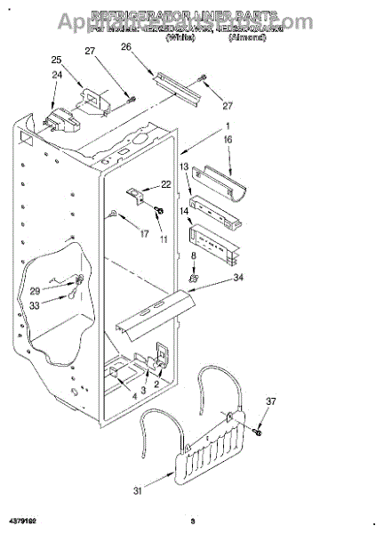 The Air Diffuser Assembly is an OEM part for Whirlpool refrigerators. It regulates the airflow between the refrigerator and freezer compartments, ensuring the proper distribution of cold air to maintain the desired temperatures in both sections.