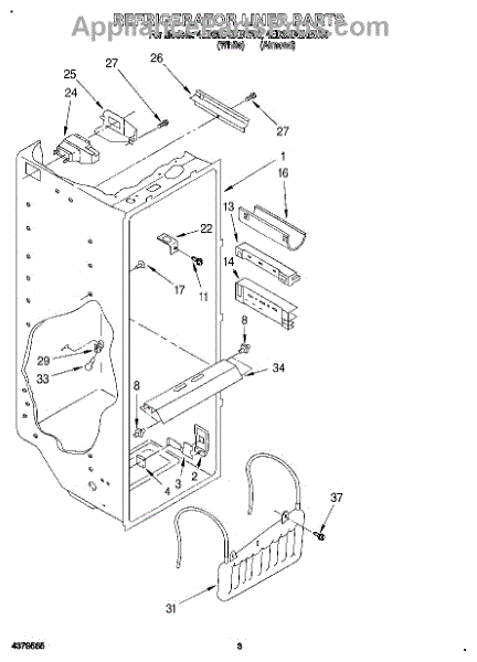 Parts for Whirlpool 4ED25DQXBW00: 02 - Refrigerator Liner Parts