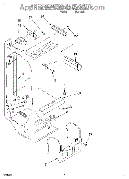 The Air Diffuser Assembly is an OEM part for Whirlpool refrigerators. It regulates the airflow between the refrigerator and freezer compartments, ensuring the proper distribution of cold air to maintain the desired temperatures in both sections.