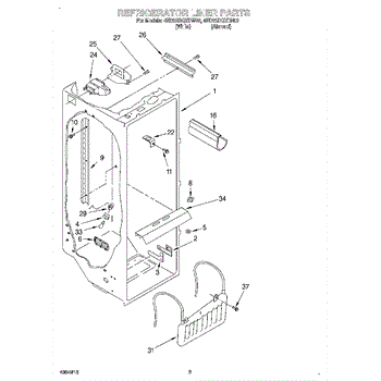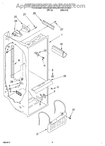 The Air Diffuser Assembly is an OEM part for Whirlpool refrigerators. It regulates the airflow between the refrigerator and freezer compartments, ensuring the proper distribution of cold air to maintain the desired temperatures in both sections.