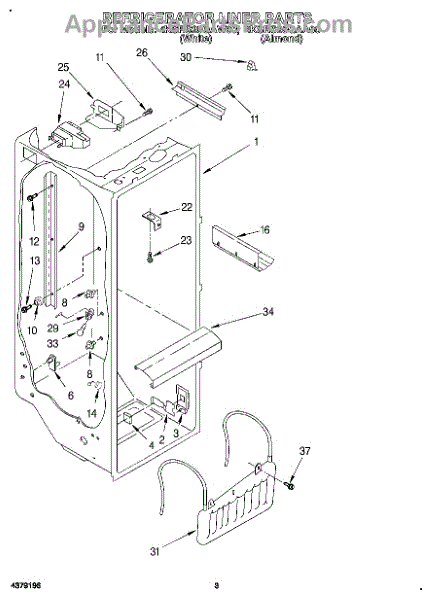 The Air Diffuser Assembly is an OEM part for Whirlpool refrigerators. It regulates the airflow between the refrigerator and freezer compartments, ensuring the proper distribution of cold air to maintain the desired temperatures in both sections.