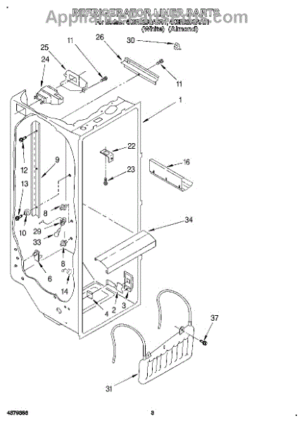 The Air Diffuser Assembly is an OEM part for Whirlpool refrigerators. It regulates the airflow between the refrigerator and freezer compartments, ensuring the proper distribution of cold air to maintain the desired temperatures in both sections.