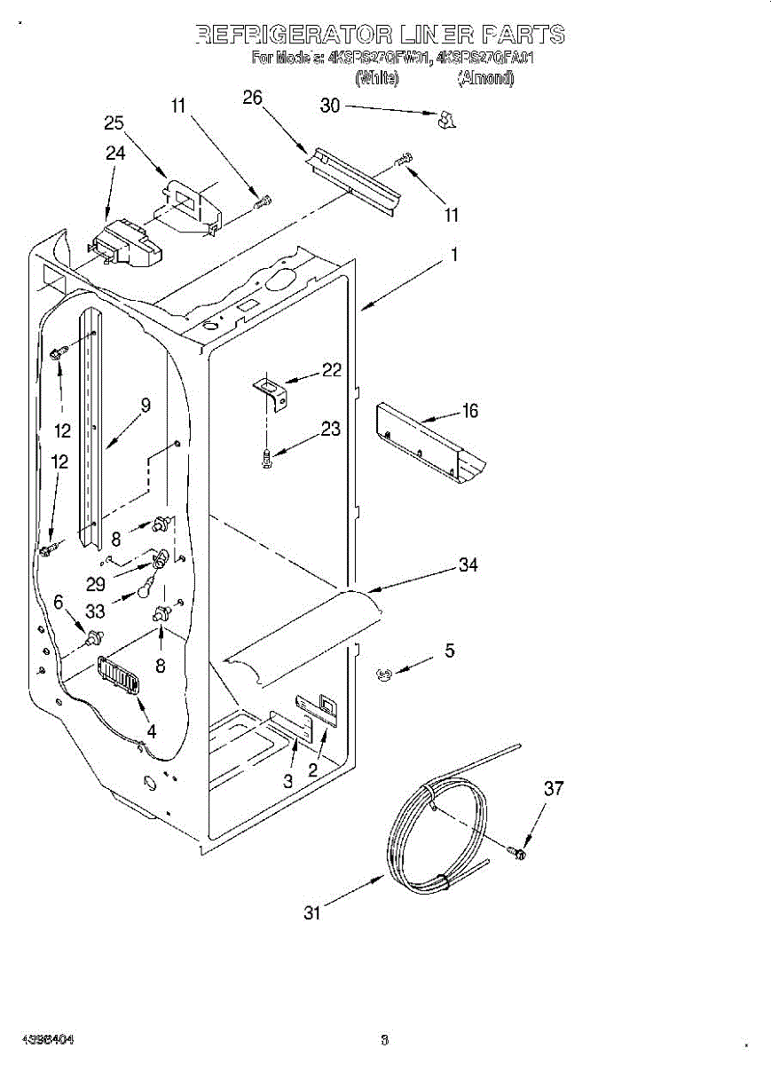 Parts for Whirlpool 4KSRS27QFW01: 02 - Refrigerator Liner Parts