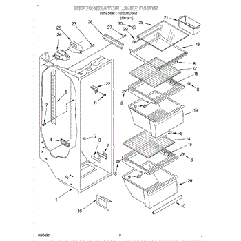 This air deflector directs chilled air inside the refrigerator's fresh-food compartment to maintain even cooling and proper circulation. It replaces a damaged or missing deflector so cold air reaches interior shelves and drawers. What it does: