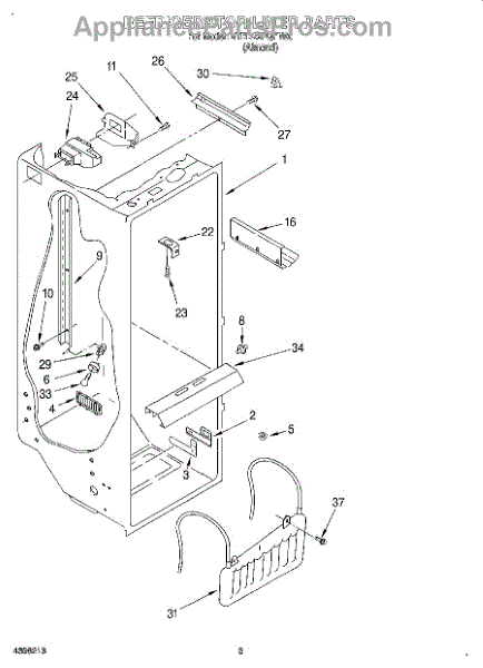 The Air Diffuser Assembly is an OEM part for Whirlpool refrigerators. It regulates the airflow between the refrigerator and freezer compartments, ensuring the proper distribution of cold air to maintain the desired temperatures in both sections.