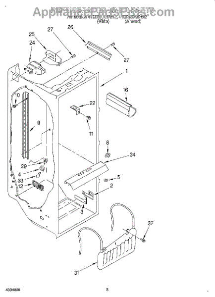 The Air Diffuser Assembly is an OEM part for Whirlpool refrigerators. It regulates the airflow between the refrigerator and freezer compartments, ensuring the proper distribution of cold air to maintain the desired temperatures in both sections.
