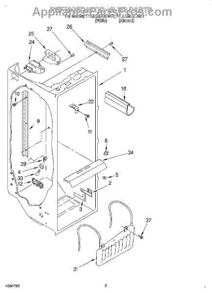 Parts for Whirlpool 4YED25DQDW01: 02 - Refrigerator Liner Parts