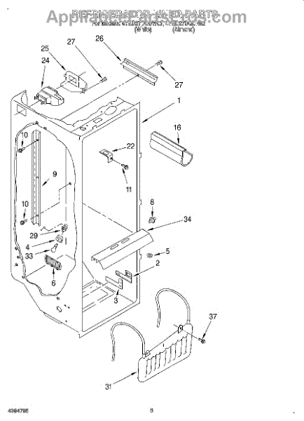The Air Diffuser Assembly is an OEM part for Whirlpool refrigerators. It regulates the airflow between the refrigerator and freezer compartments, ensuring the proper distribution of cold air to maintain the desired temperatures in both sections.
