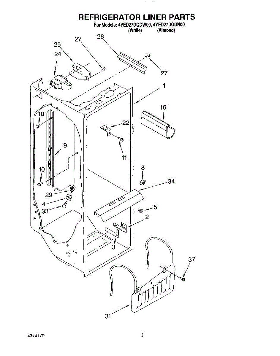Parts for Whirlpool 4YED27DQDW00: 02 - Refrigerator Liner Parts
