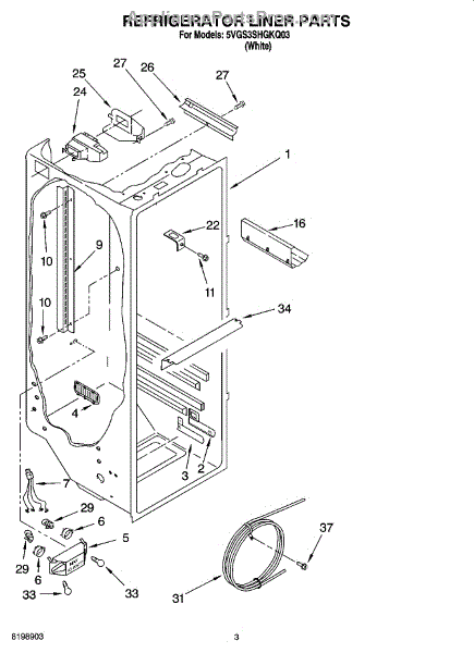 Parts for Whirlpool 5VGS3SHGKQ03: 02 - Refrigerator Liner Parts