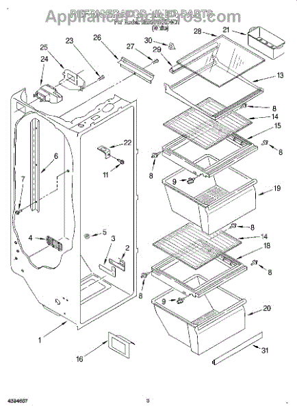 The Air Diffuser Assembly is an OEM part for Whirlpool refrigerators. It regulates the airflow between the refrigerator and freezer compartments, ensuring the proper distribution of cold air to maintain the desired temperatures in both sections.