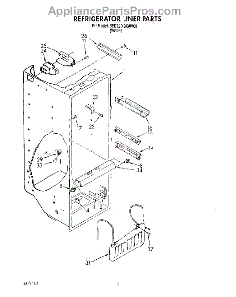 Parts for Whirlpool 6ED22DQXAW00: 02 - Refrigerator Liner Parts