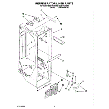The Water Reservoir Tubing is an OEM replacement part for Whirlpool refrigerators. It is a flexible plastic tubing that replaces the water reservoir and holds the water for the ice maker and dispenser. Causes can include cracks from heat or cold exposure over time, punctures from sharp edges during installation, or deterioration of plastic tubing that impacts integrity. Symptoms of bad water reservoir tubing include: