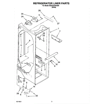Parts for Whirlpool 6ED2FHKXKQ04: 02 - Refrigerator Liner Parts