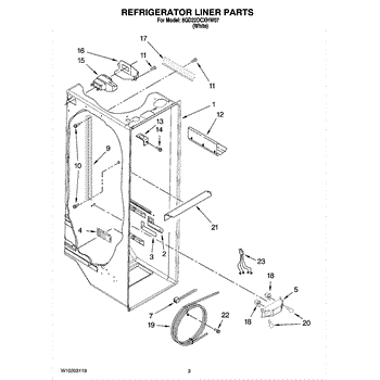 The Water Reservoir Tubing is an OEM replacement part for Whirlpool refrigerators. It is a flexible plastic tubing that replaces the water reservoir and holds the water for the ice maker and dispenser. Causes can include cracks from heat or cold exposure over time, punctures from sharp edges during installation, or deterioration of plastic tubing that impacts integrity. Symptoms of bad water reservoir tubing include:
