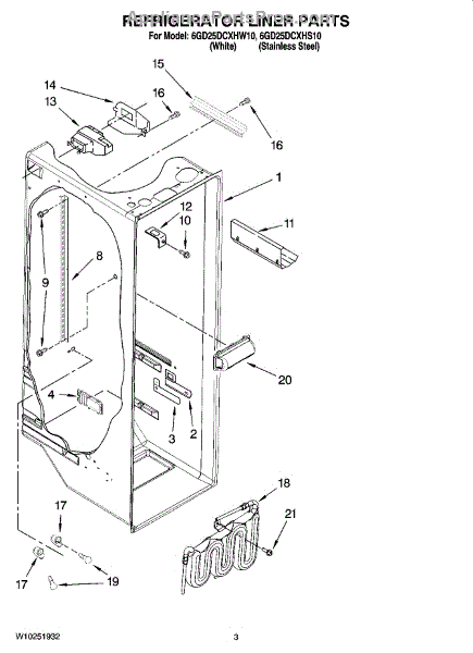 The Water Reservoir Tubing is an OEM replacement part for Whirlpool refrigerators. It is a flexible plastic tubing that replaces the water reservoir and holds the water for the ice maker and dispenser. Causes can include cracks from heat or cold exposure over time, punctures from sharp edges during installation, or deterioration of plastic tubing that impacts integrity. Symptoms of bad water reservoir tubing include: