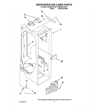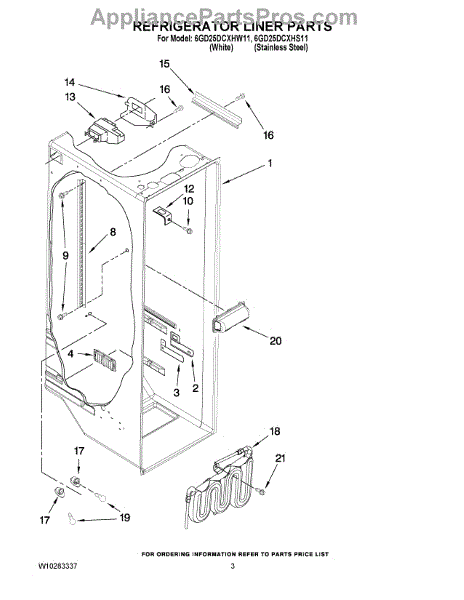 The Water Reservoir Tubing is an OEM replacement part for Whirlpool refrigerators. It is a flexible plastic tubing that replaces the water reservoir and holds the water for the ice maker and dispenser. Causes can include cracks from heat or cold exposure over time, punctures from sharp edges during installation, or deterioration of plastic tubing that impacts integrity. Symptoms of bad water reservoir tubing include: