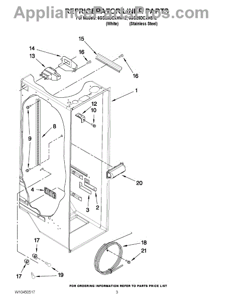 The Water Reservoir Tubing is an OEM replacement part for Whirlpool refrigerators. It is a flexible plastic tubing that replaces the water reservoir and holds the water for the ice maker and dispenser. Causes can include cracks from heat or cold exposure over time, punctures from sharp edges during installation, or deterioration of plastic tubing that impacts integrity. Symptoms of bad water reservoir tubing include: