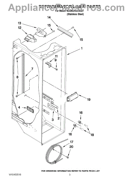 The Water Reservoir Tubing is an OEM replacement part for Whirlpool refrigerators. It is a flexible plastic tubing that replaces the water reservoir and holds the water for the ice maker and dispenser. Causes can include cracks from heat or cold exposure over time, punctures from sharp edges during installation, or deterioration of plastic tubing that impacts integrity. Symptoms of bad water reservoir tubing include: