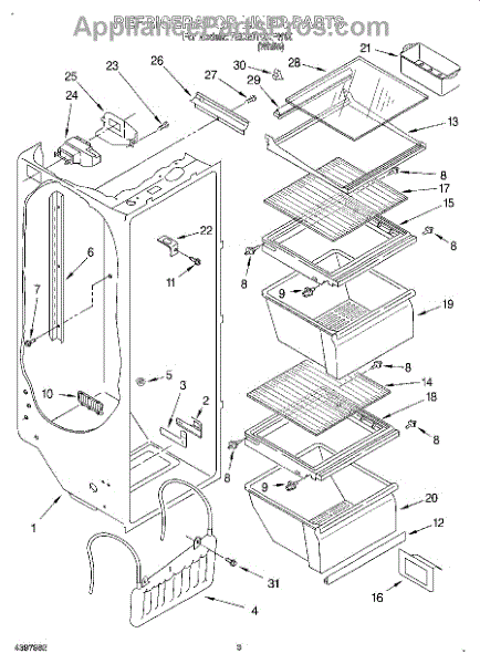 The Air Diffuser Assembly is an OEM part for Whirlpool refrigerators. It regulates the airflow between the refrigerator and freezer compartments, ensuring the proper distribution of cold air to maintain the desired temperatures in both sections.