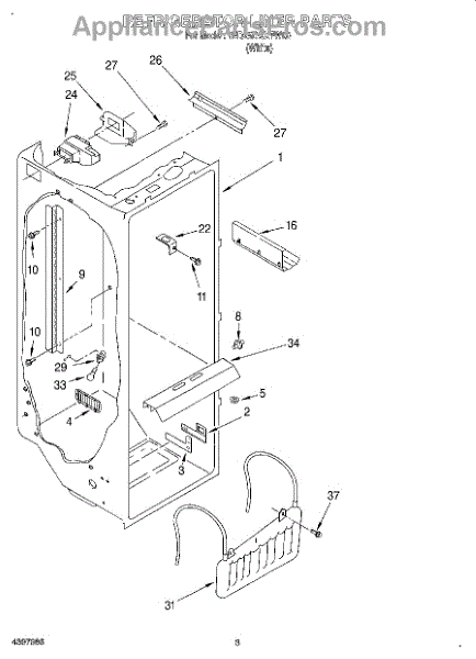 The Air Diffuser Assembly is an OEM part for Whirlpool refrigerators. It regulates the airflow between the refrigerator and freezer compartments, ensuring the proper distribution of cold air to maintain the desired temperatures in both sections.