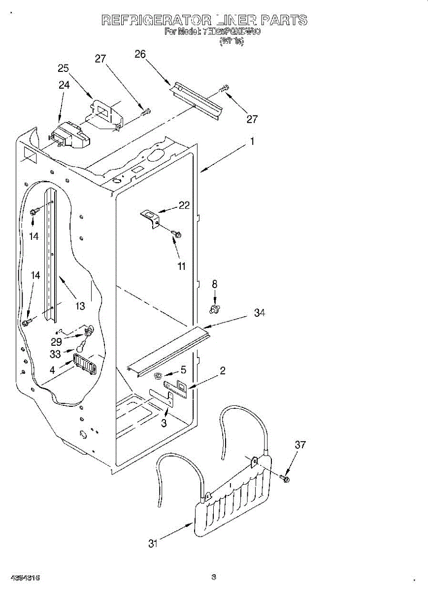 Parts for Whirlpool 7ED25PQXDW00: 02 - Refrigerator Liner Parts