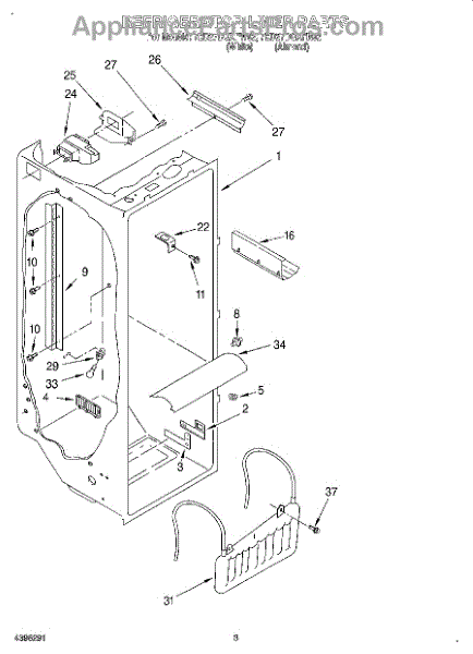 The Air Diffuser Assembly is an OEM part for Whirlpool refrigerators. It regulates the airflow between the refrigerator and freezer compartments, ensuring the proper distribution of cold air to maintain the desired temperatures in both sections.