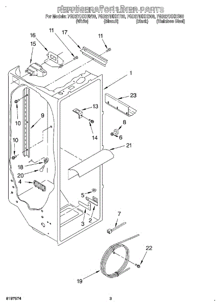 Parts for Whirlpool 7GD27DIXHT00: 02 - Refrigerator Liner Parts