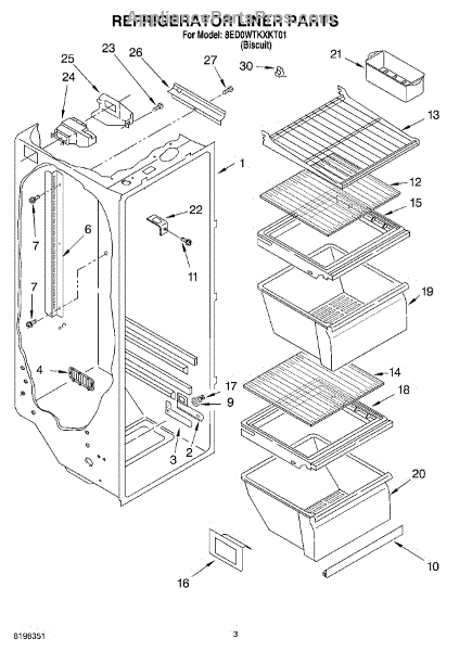 Directs chilled air through the fresh-food compartment to maintain even cooling. Replace if cracked, broken, or missing to restore proper airflow.