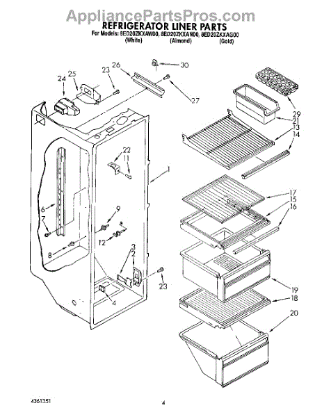 Parts for Whirlpool 8ED20ZKXAG00: 03 - Refrigerator Liner Parts