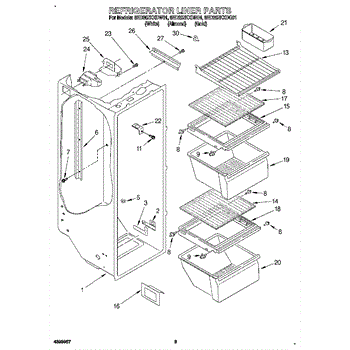 Parts for Whirlpool 8ED20ZKXDN01: 02 - Refrigerator Liner Parts
