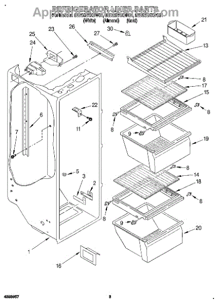 This air deflector directs chilled air inside the refrigerator's fresh-food compartment to maintain even cooling and proper circulation. It replaces a damaged or missing deflector so cold air reaches interior shelves and drawers. What it does: