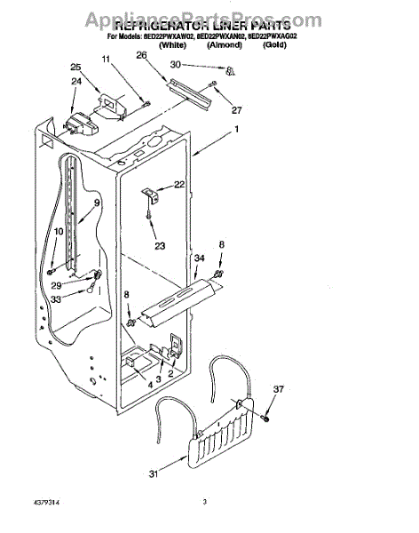 Parts for Whirlpool 8ED22PWXAN02: 02 - Refrigerator Liner Parts