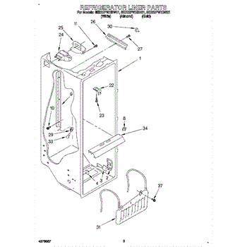 Parts for Whirlpool 8ED22PWXBN01: 02 - Refrigerator Liner Parts