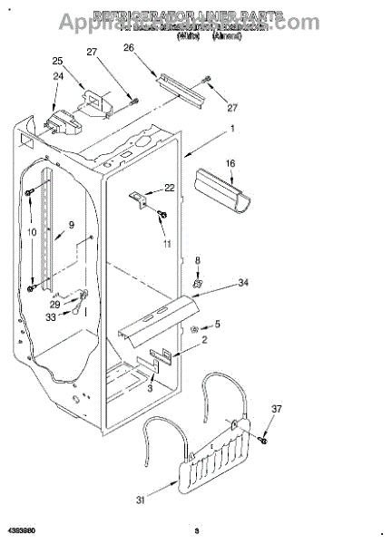 Parts for Whirlpool 8ED25DQXDN01: 02 - Refrigerator Liner Parts